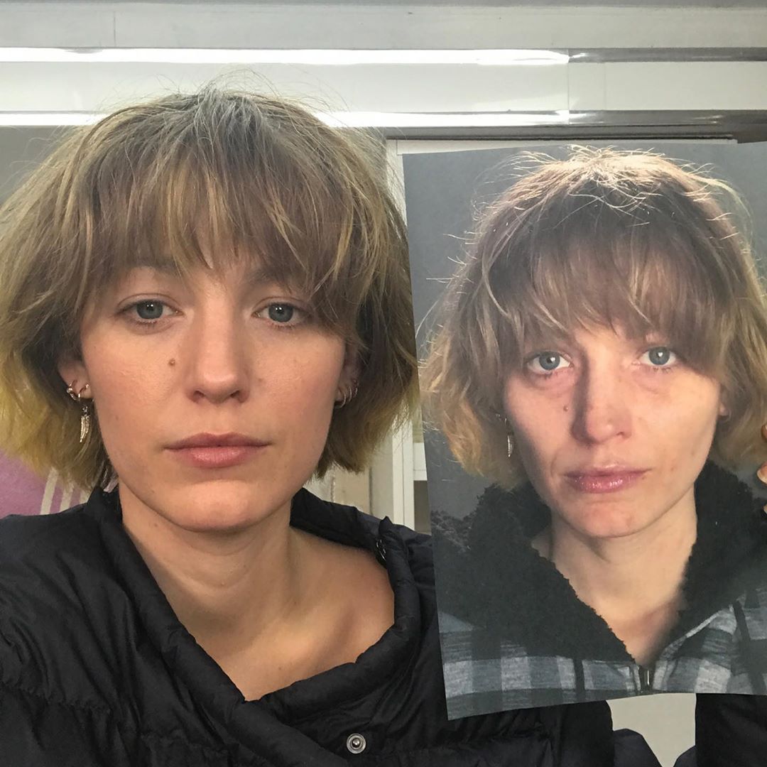 H Blake, λοιπόν, που την έχουμε μάθει με μακριά, ανέμελα, ξανθά μαλλιά ποζάρει καταρχάς με καστανόξανθα, ημίκοντα, άβαφη και μοιάζει με μία άλλη. Λάμψη... γιοκ, απουσιάζει, αλλά εμάς δεν μας πειράζει. Αν εκείνης της αρέσει ο εαυτός της έτσι, δεν μας πέφτει και λόγος στο κάτω-κάτω.