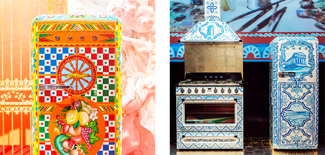 Η νέα τους σειρά, δε, είναι αμιγώς «Made in Greece». Ζωγραφισμένα στο χέρι, ψυγεία και κουζίνες απεικονίζουν τον αρχαίο ελληνικό ναό των Διόσκουρων και μας εμπνέουν.