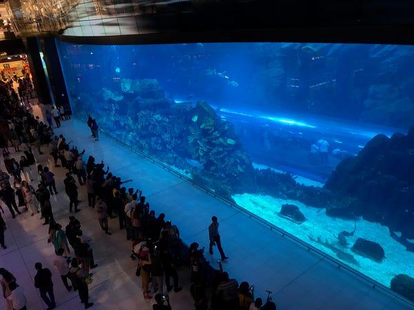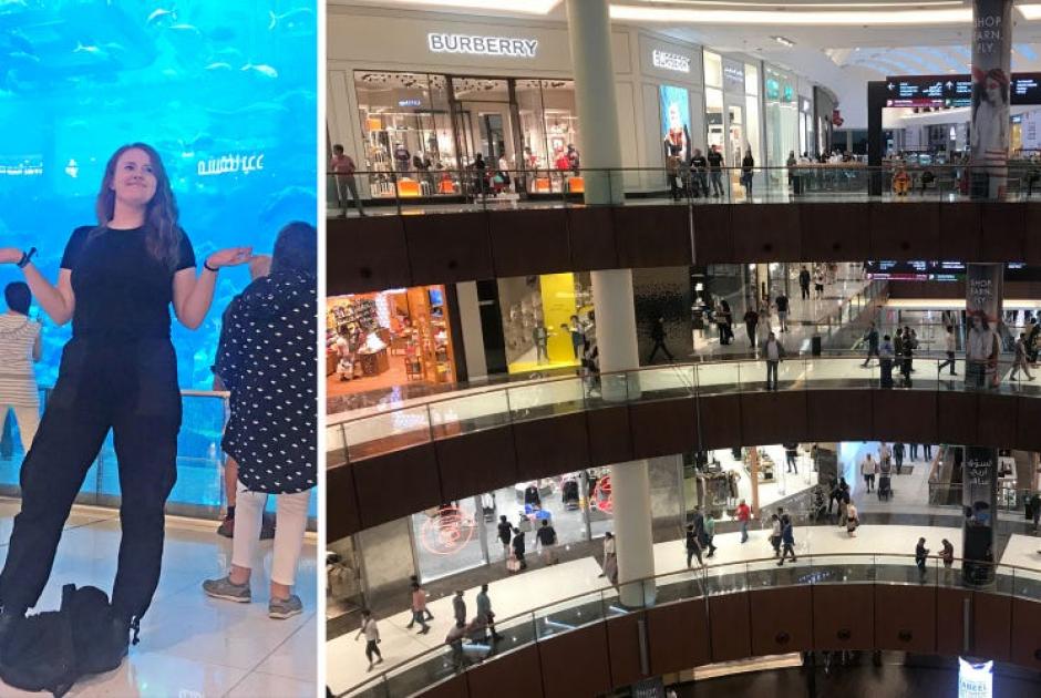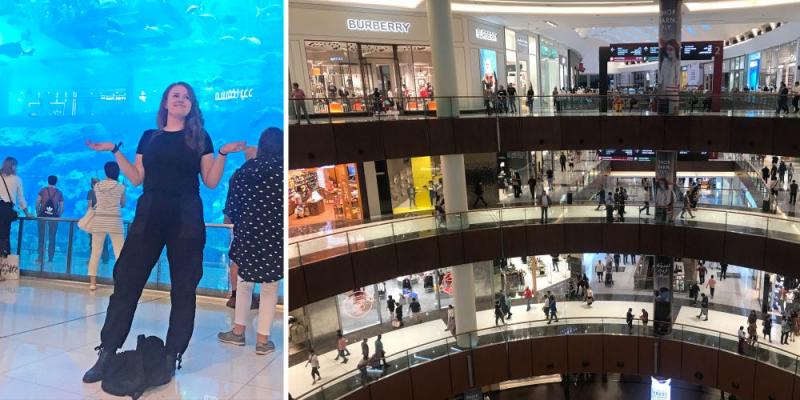 Το Dubai Mall καλύπτει μία έκταση 100 εκατομμυρίων τετραγωνικών ποδιών και περιλαμβάνει κυριολεκτικά τα πάντα! Διαθέτει μαγαζιά διάσημων, προσιτών αλυσίδων γρήγορης μόδας μέχρι υποκαταστήματα κορυφαίων οίκων, όπως Hermes, Chanel και Bottega Venetta. Και από ακριβά εστιατόρια μέχρι παγοδρόμιο και ένα γιγάντιο ενυδρείο!