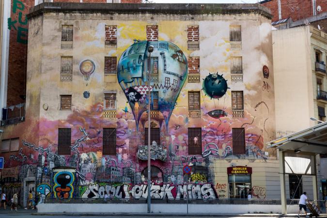 Ένα από τα πιο ιστορικά κτίρια στην περιοχή Eixample της Βαρκελώνης κοσμείται από αυτό το όμορφο graffiti με το αερόστατο. Πριν από αυτό ήταν το πιο διάσημο σπίτι της πόλης από το 2008 μέχρι το 2012.