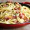 Η καρμπονάρα είναι μια συνταγή με βασικό συστατικό τα ζυμαρικά, τα οποία συνοδευόμενα από μια σάλτσα με αυγά, πεκορίνο και γκουαντσιάλε, ζαμπόν από το μάγουλο του χοιρινού.
