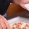 Με ένα πλάστη ανοίγουμε την ζύμη μας σε ένα πάγκο. Όταν έχουμε κάνει το σχήμα μας το βάζουμε πάνω σε ένα ταψί με ένα αντικολλητικό χαρτί.
