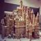 - Με τη βοήθεια Royal icing κολλάμε τα κομμάτια του σπιτιού μεταξύ τους πάνω σε μια βάση ή ένα ξύλο κοπής. Χρησιμοποιούμε αρκετά μεγάλη ποσότητα της «κόλλας» μας και αφήνουμε να στεγνώσει λίγο για να συνεχίσουμε με τη διακόσμηση.