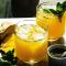 Ανακάτεψε όλα τα υλικά μέσα σε ένα ποτήρι με παγάκια. Για γαρνιτούρα χρησιμοποίησε τα φύλλα μέντας, τη φέτα τζίντζερ και τη φέτα γκρέιπφρουτ.