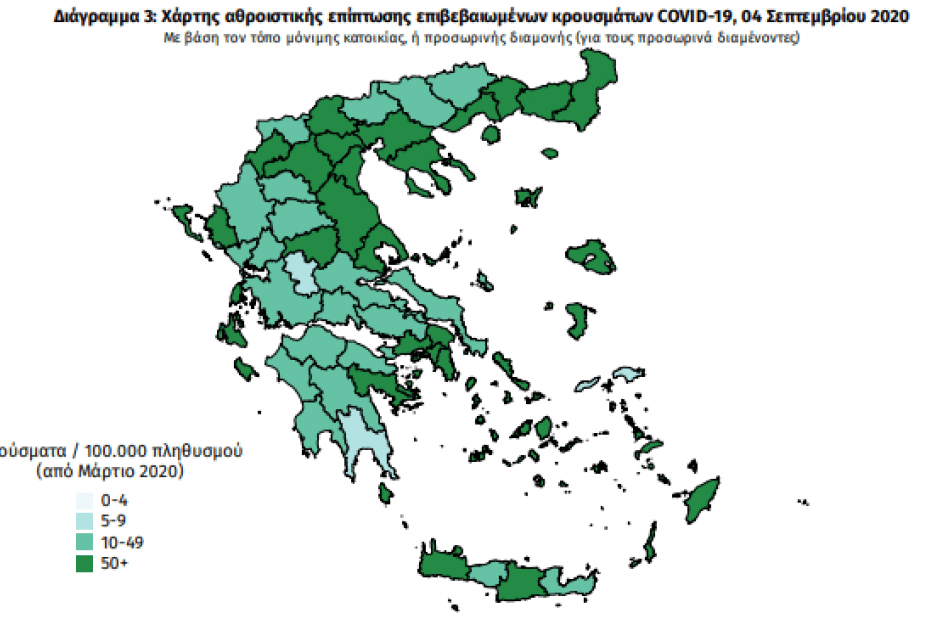 - 86 κρούσματα στην Π.Ε. Αττικής, εκ των οποίων 16 αναφέρουν πρόσφατο ταξίδι στο εσωτερικό της χώρας, ενώ 4 συνδέονται με συρροές