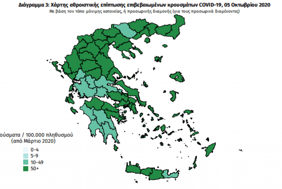 - 167 κρούσματα στην Περιφέρεια Αττικής, εκ των οποίων 34 συνδέονται με γνωστές συρροές, ενώ 2 αναφέρουν πρόσφατο ταξίδι στο εσωτερικό της χώρας