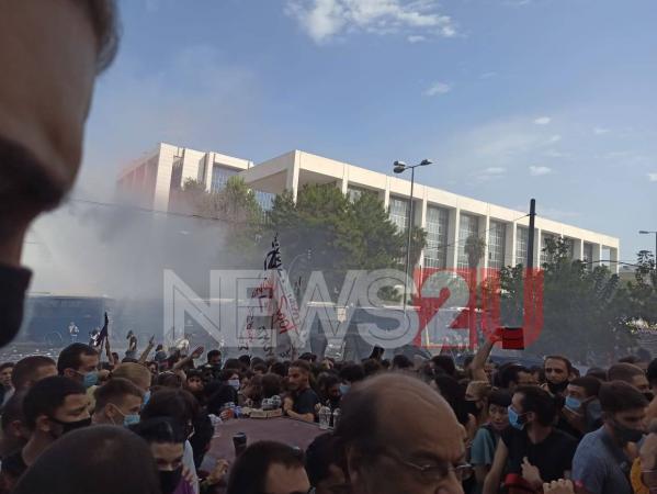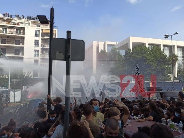 Tην ώρα που το πλήθος πανηγύριζε για την ιστορική απόφαση περί εγκληματικής οργάνωσης της Χρυσής Αυγής, οι αστυνομικοί με ρίψη χημικών και αύρας προσπάθησαν να διαλύσουν την κοσμοσυρροή.