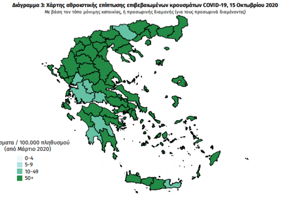 Η γεωγραφική κατανομή των σημερινών (15/10) κρουσμάτων είναι η εξής: