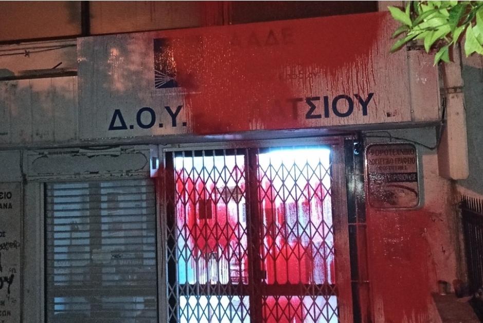 Οι παρεμβάσεις έγιναν στις υπηρεσίες με κόκκινες μπογιές και την ρίψη φέιγ βολάν.
