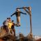 Τα κλαδιά μεταφέρονται σε καρότσες στο σημείο όπου θα στηθεί η φουνάρα και τοποθετούνται πάνω σε άλλα δημιουργώντας ένα μεγάλο σωρό.