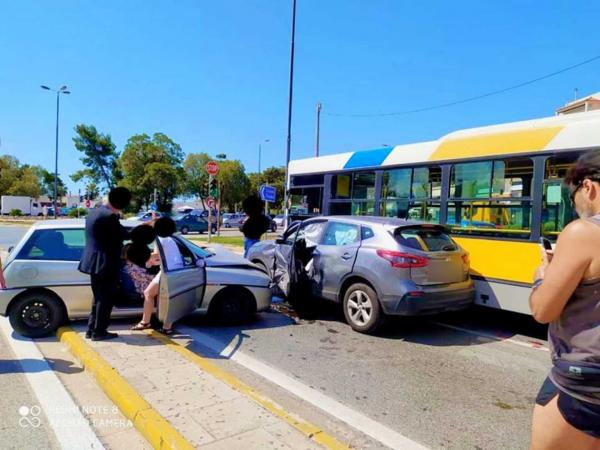 Το τροχαίο ατύχημα έγινε μεταξύ δύο αυτοκινήτων και ενός λεωφορείου.