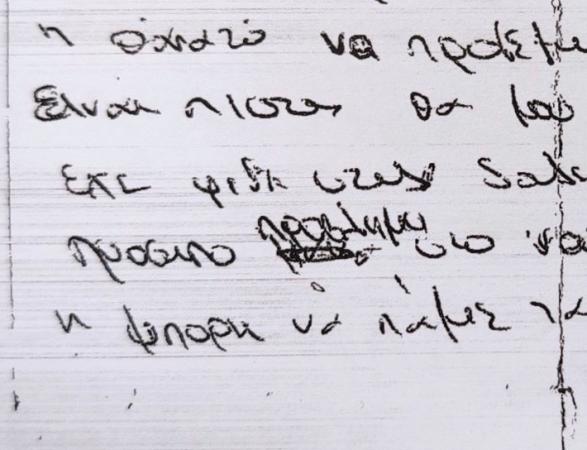 Μάλιστα, σύμφωνα με με αξιωματικούς της Υποδιεύθυνσης Ασφάλειας Αθηνών, από τις επισκέψεις της η 35χρονη φαίνεται να κρατούσε σημειώσεις, χωρίς ειρμό, οι οποίες βρέθηκαν στο σπίτι της στην περιοχή του Ζωγράφου.