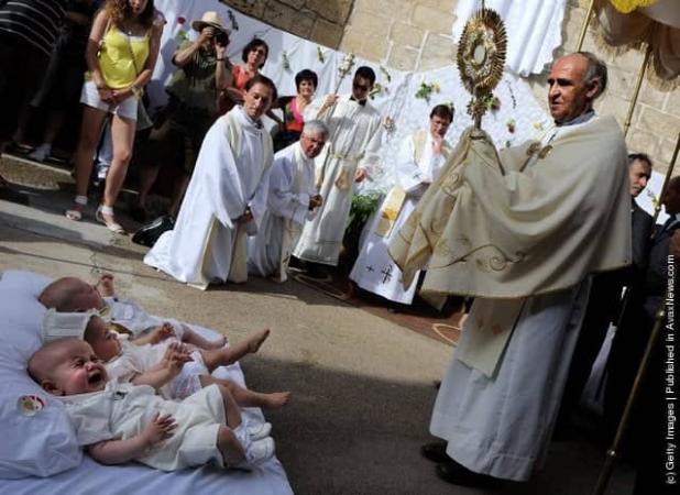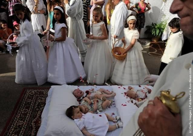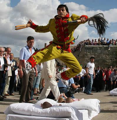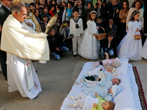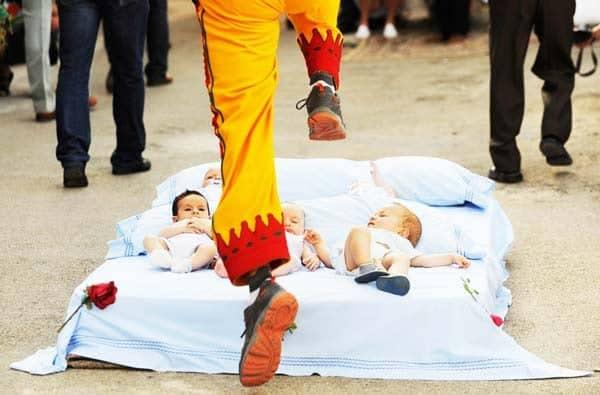 Στην Ισπανία και πιο συγκεκριμένα σε ένα μικρό χωριό το Castrillo de Murcia, βόρεια της χώρας, πραγματοποιείται κάθε χρόνο ένα ασυνήθιστο έθιμο, που σκοπό έχει τον εξαγνισμό των βρεφών που γεννήθηκαν μέσα στο τρέχον έτος.