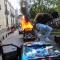 Η διαδήλωση πήρε βίαιη τροπή όταν κουκουλοφόροι πυρπόλησαν δύο περιπολικά και προκάλεσαν φθορές σε κτίριο της τοπικής αυτοδιοίκησης, ενώ μονάδες αντιμετώπισης ταραχών επενέβησαν για να τους απωθήσουν και να τους διαλύσουν.