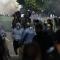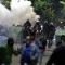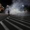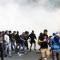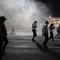 Οι διαδηλωτές απάντησαν με φωτοβολίδες, πέτρες, μπουκάλια και αυγά προς την αστυνομία.