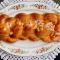 Χωρίζουμε τη ζύμη σε 4 κομμάτια και σχηματίζουμε κορδόνια ανά δύο και τα πλέκουμε ενώνοντας τις άκρες.