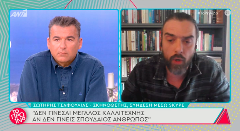 Ο μοναδικός σκηνοθέτης Σωτήρης Τσαφούλιας βγήκε σε ζωντανή σύνδεση στην εκπομπή του Γιώργου Λιάγκα και της Φαίης Σκορδά, «Το Πρωινό», όπου και εξέφρασε την άποψή του για όσα ακούγονται τις τελευταίες μέρες αναφορικά με τις καταγγελίες περί σεξουαλικής κακοποίησης / παρενόχλησης εις βάρος ατόμων από τον χώρο του θεάματος – «Το τραύμα στην ψυχή του Μοθωναίου στα πόσα χρόνια παραγράφεται;»