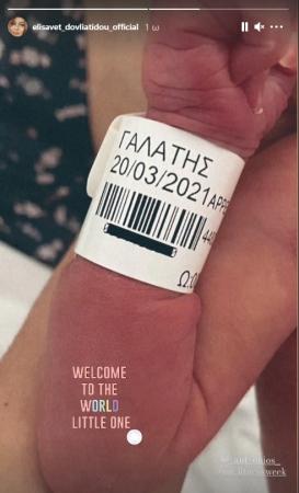 Η όμορφη μανούλα, Ελισάβετ Δοβλιατίδου, θέλησε να γνωστοποιήσει το χαρμόσυνο αυτό γεγονός μέσα από τον προσωπικό της λογαριασμό στο Instagram, ποστάροντας μιας φωτογραφία από το μαιευτήριο. Ειδικότερα, η ίδια έγραψε στο story της στο Instagram: «Καλώς ήρθες στον κόσμο μικρέ».