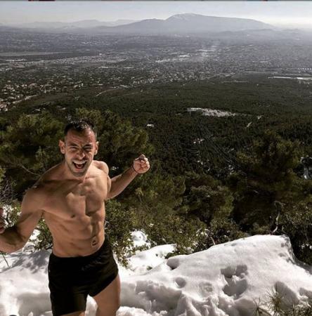 Ο πρώην παίκτης του παιχνιδιού επιβίωσης βρέθηκε το βουνό της Πάρνηθας όπου αποφάσισε να κάνει γυμναστική στα χιόνια.