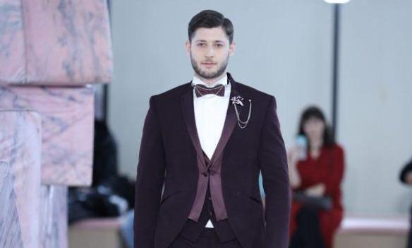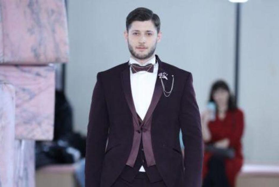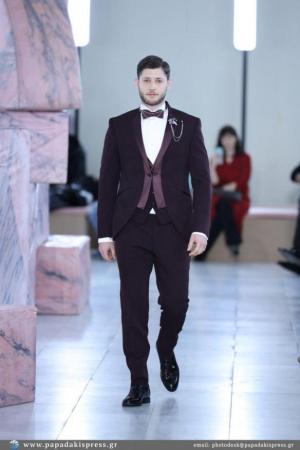 Φορώντας δημιουργία του οίκου μόδας «Nikos- Takis» ντύθηκε για πρώτη φορά γαμπρός και καταχειροκροτήθηκε με το που εμφανίστηκε στην πασαρέλα.