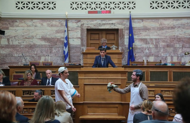 Ήταν μία ξεχωριστή στιγμή στο ελληνικό κοινοβούλιο, όταν ο Γεράσιμος Σκιαδαρέσης παρουσίασε μία θεατρική παράσταση, στα έδρανα, και καταχειροκροτηθηκε.