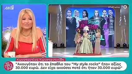 «Ακουγόταν ότι το έπαθλο του My Style Rocks είναι αξίας 30.000 ευρώ. Δεν είχα ακούσει ποτέ ότι ήταν 30.000 ευρώ. Μπορεί να ήταν δωροεπιταγές, μπορεί οτιδήποτε. Δεν είχα καταλάβει ποτέ σε καμία περίπτωση ότι είναι μετρητά», δήλωσε αρχικά για το τελικό έπαθλο.