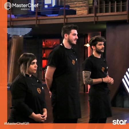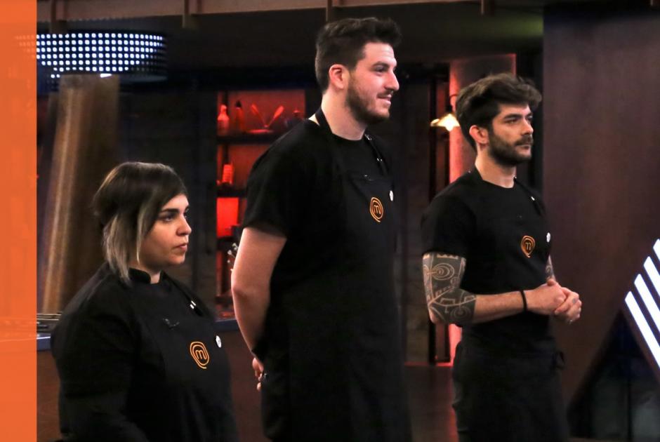 MasterChef: Οι τρεις υποψήφιοι προς αποχώρηση, ο Γιώργος για 3η φορά στη θέση αυτή, η Ντέμη για πρώτη φορά και ο Ηρακλής για 5η συνεχόμενη, φορώντας τις μαύρες τους ποδιές βρίσκονται «ετοιμοπόλεμοι» για να διεκδικήσουν την είσοδο στη δεκάδα.