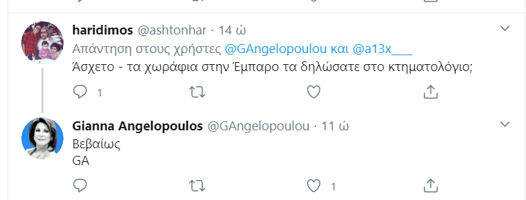 Οι χρήστες άρχισαν να κατηγορούν την Αγγελοπούλου για... πλουτισμό και για μεθοδολογία φοροδιαφυγής και δεν δίστανε να απαντήσει, με έναν τρόπο που δεν αφήνει καμία αμφιβολία για την καθαρότητα των φορολογικών της δηλώσεων.