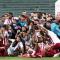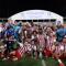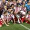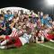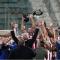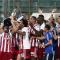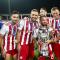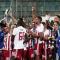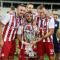 Οι παίκτες του Ολυμπιακού έφτασαν στην κατάκτηση του 28ου Κυπέλλου Ελλάδας και πανηγύρισαν σαν μικρά παιδιά το νταμπλ, στον αγωνιστικό χώρο του Πανθεσσαλικού Σταδίου.