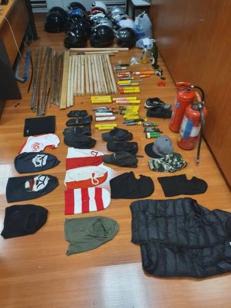 Από την άμεση επέμβαση των Αστυνομικών δυνάμεων επετεύχθη η σύλληψη δεκαέξι (16) ατόμων που συμμετείχαν στις συμπλοκές και η κατάσχεση πλήθους αντικειμένων που χρησιμοποιήθηκαν για τις εκατέρωθεν επιθέσεις.