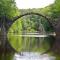 Η κομψή, αψιδωτή Γέφυρα του Διαβόλου, βρίσκεται στον ποταμό Ρακότζι στο πάρκο Ροντόντεντρον του Κρόμλάου στη Γερμανία. Οι επισκέπτες μπορούν να θαυμάσουν τη γοτθική αρχιτεκτονική εντός ορίων του πάρκου, αλλά η μεγάλη ατραξιόν είναι η γέφυρα. Χάρη στην ημικυκλική δομή της γέφυρας, η αντανάκλασή της δημιουργεί την ψευδαίσθηση ενός τέλειου κύκλου τις ημέρες που το φως είναι κατάλληλο και τα νερά ήρεμα.